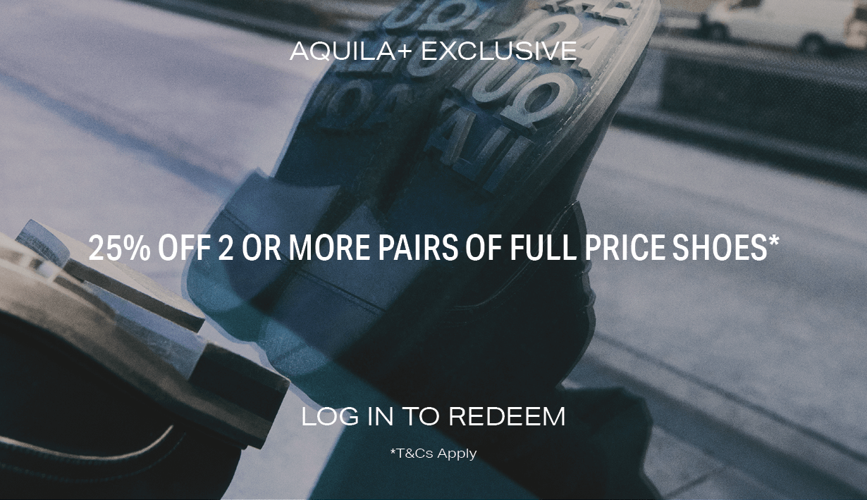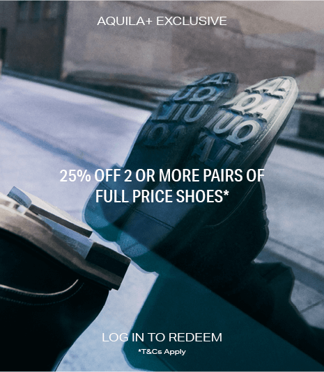 Join the AQUILA+ membership program to gain access to exclusive perks such as 25% off two or more full price shoes and 30% off accessories always, plus free returns*. Sign up or login to your account to start redeeming your perks now. AQUILA+ discounts applied automatically at checkout.
